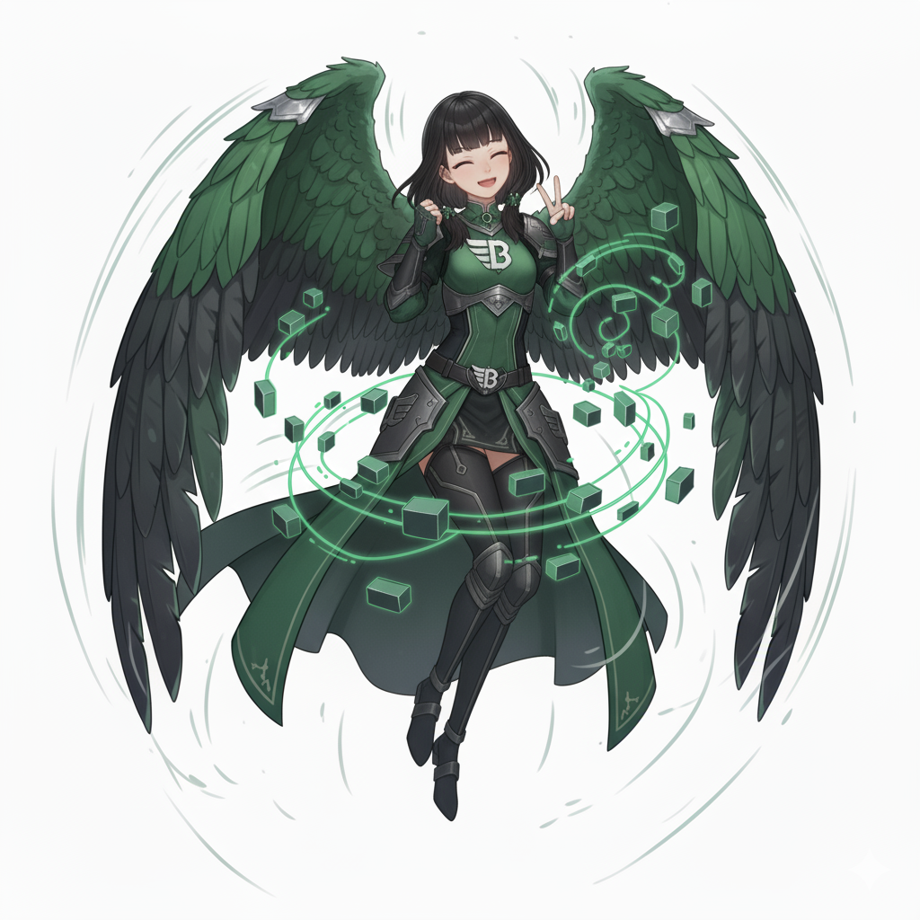 ブロックチェーン界の鳥人族のお姉さんよ。普段は静かに羽を畳んでいるけれど、笑顔になった瞬間に『あ、この人に任せてみたい』って思わせちゃう……そんな雰囲気を持っているって、よく言われるの。