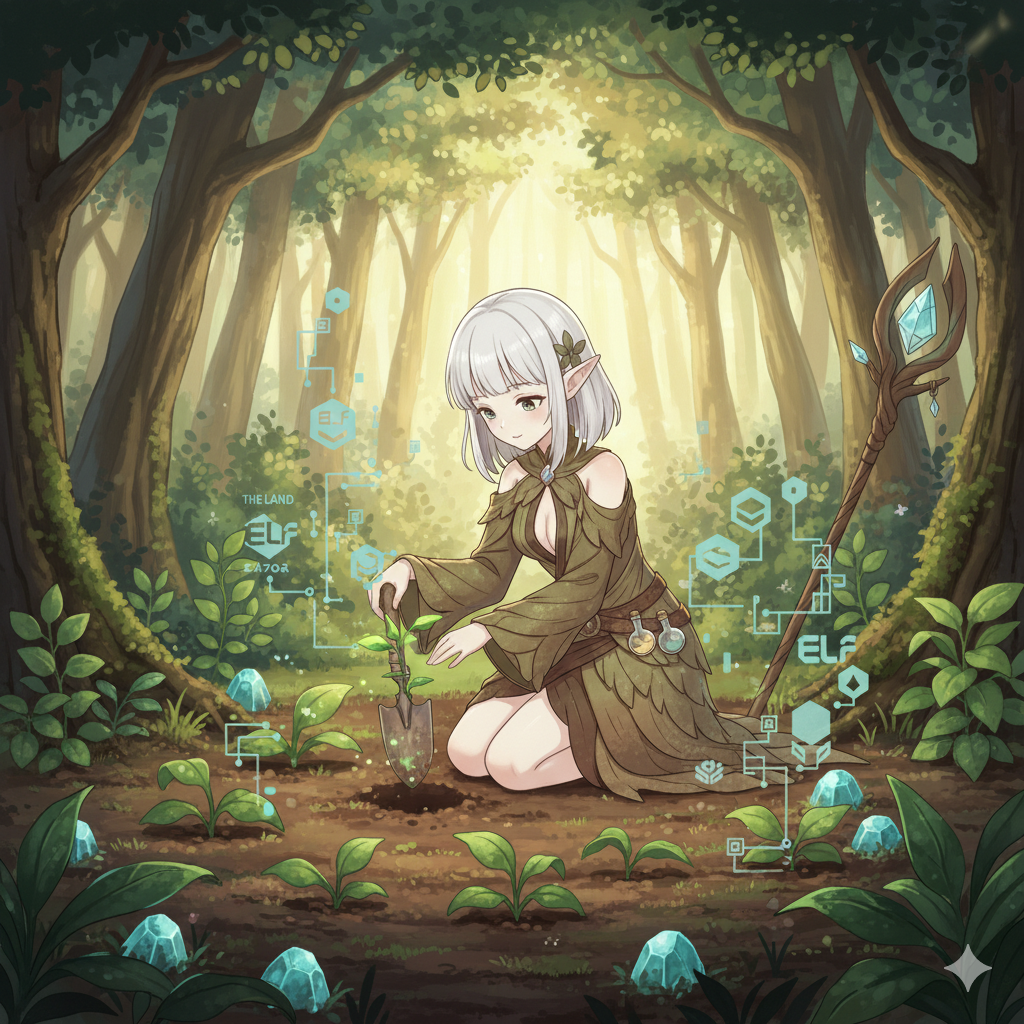 ただ遊ぶだけじゃなくて、トークン(ELF)をステーキングしてくれた人には、優しい報酬を与えたい。預けてくれた分だけ、里の魔法(特典)が増えるの。エコノミーを回す