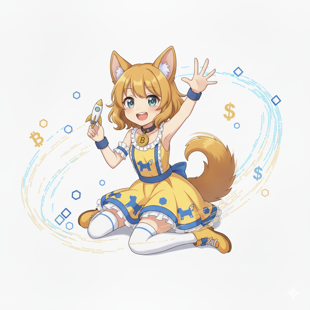 ドージちゃん(Dogecoin)っていう立派なお姉ちゃんがいるんだけど、ぼくはその“赤ちゃん版”なの!