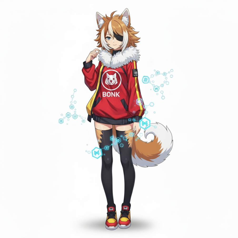こんにちは、わたしはボンク(BONK)。ソラナ界隈で生まれた犬耳のお姉さんだワン。普段はクールに見えるかもしれないけど、仲間を守るためなら全力で動くし、困っている人がいたら絶対に助けるよ。