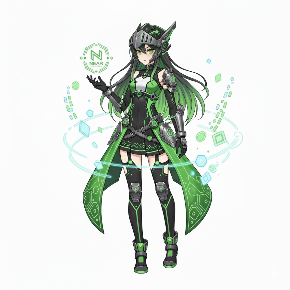 はじめまして、私はニア(NEAR)。近未来のデジタル騎士と呼ばれているわ。騎士というと堅物に思われるかもしれないけれど、私はただ戦うためだけの存在じゃないの。人々を守り、安心させ、そして未来へ導くことにこそ誇りを持っているの。