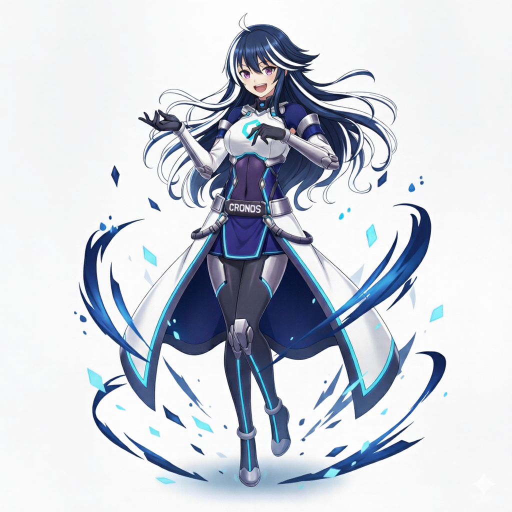 CROとして、わたしは時を超え、空間を操り、無数の可能性を結びつける存在。未来よ、覚悟して。わたしクロノスが、すべての時空で無限の光を刻み込んでみせるわ!